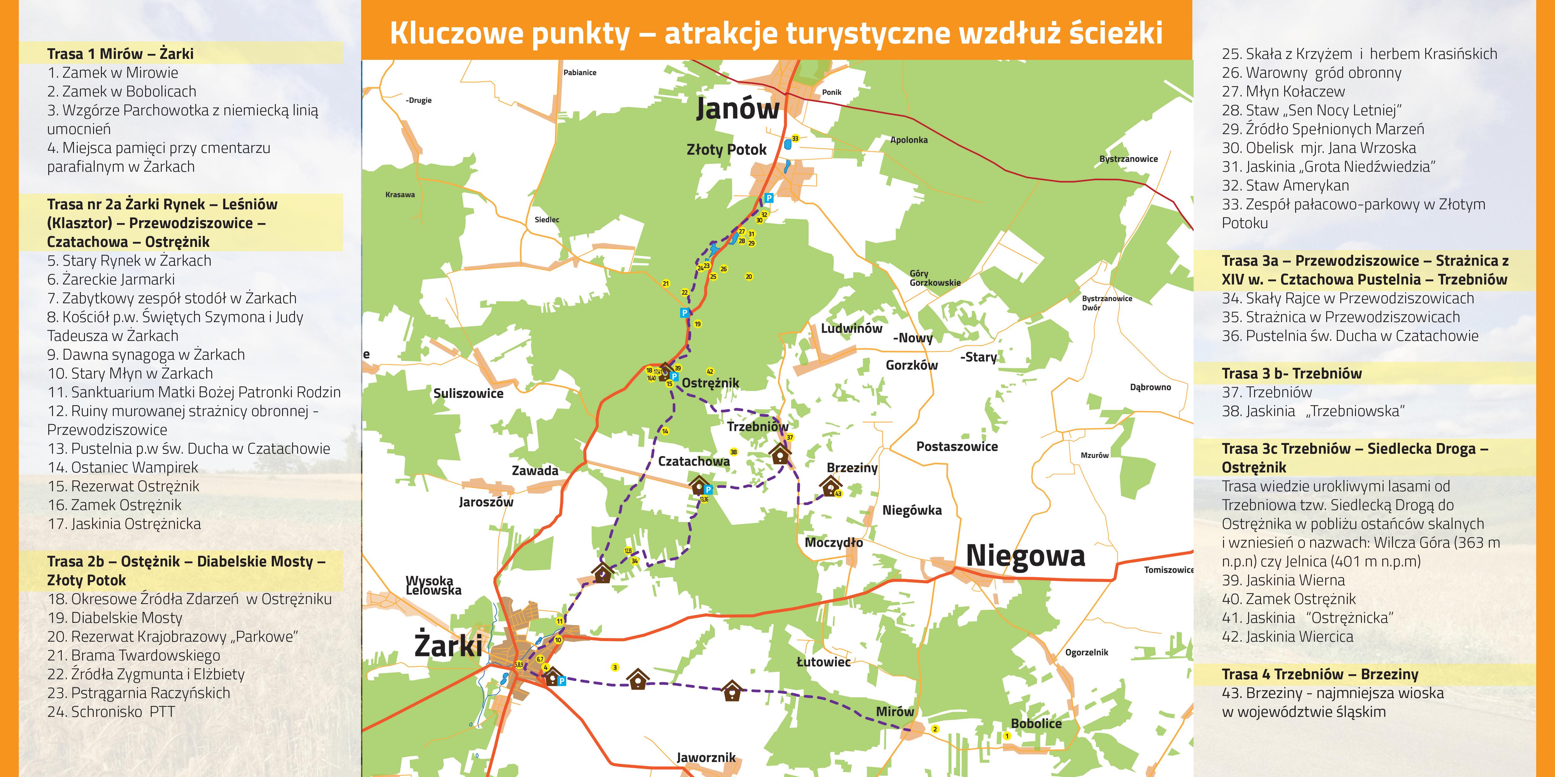 ”Szlak atrakcji turystycznych – ścieżki spacerowo-rowerowe w północnej części Województwa Śląskiego na terenie gmin Żarki, Niegowa, Janów” – tak brzmi pełna nazwa projektu realizowanego przez trzy wymienione gminy. Wszystkie położone są w malowniczych zakątkach Jury Krakowsko-Częstochowskiej i wszystkie trzy bezpośrednio ze sobą graniczą.